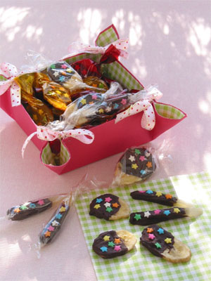 チョコレートがよく固まっていないとセロファン紙などについてしまいます。