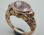 | ●ローズクォーツロイヤルハイネスペンダント&リング: 上質で大きめのローズクォーツを支えるバチカン部分に結城モイラがこよなく愛するロイヤルハイネスを精巧に彫刻しました。そのできの良さは秀逸です。モイラ(コンセプトメーカー)、石垣(チーフデザイナー)、ジュエリー職人三者の意志がぴったり合った会心作の代表です。【使用石】:ローズクォーツ 約2.3ct チェーン:カットボール 45cm スライドアジャスター | ||
